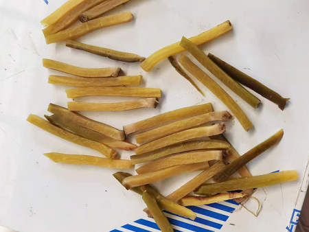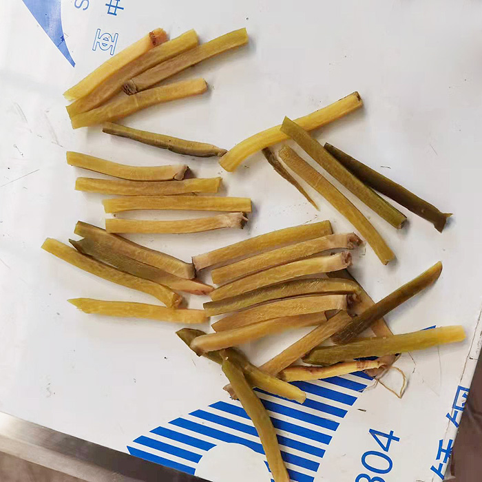产品介绍:本机可以用于常见的腌制萝卜、腌制莴笋、腌制黄瓜等腌制蔬菜的切条加工,将物料放入入料口进行切割即可,切条均匀,速度快。根据不同原料下料速度和时间均有不同。
